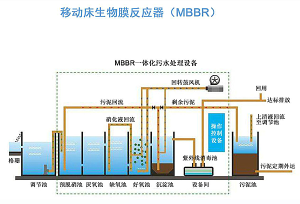 3、MBBR工藝中可不需要污泥回流設(shè)備,不需反沖洗設(shè)備,減少了設(shè)備投資,操作簡便,降低了污水的運行成本;
