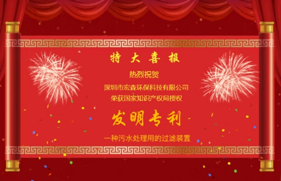2024年,注定是一個充滿喜悅和美好的一年!在這個美好的開始,時鐘剛剛敲響新一年的鐘聲,喜訊就如春風(fēng)般傳遍宏森每一個角落。我們再次迎來了又一個令人振奮的好消息:榮獲國家知識產(chǎn)權(quán)局授權(quán)的發(fā)明專利——種污水處理用的過濾裝置。這是對我們公司持續(xù)創(chuàng)新和卓越成就的高度認可,也是全體員工辛勤努力的結(jié)果。